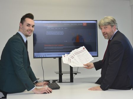 Operations Executive Sam Briggs with Employment Partner Keir Hirst and the Client Satisfaction Surveys